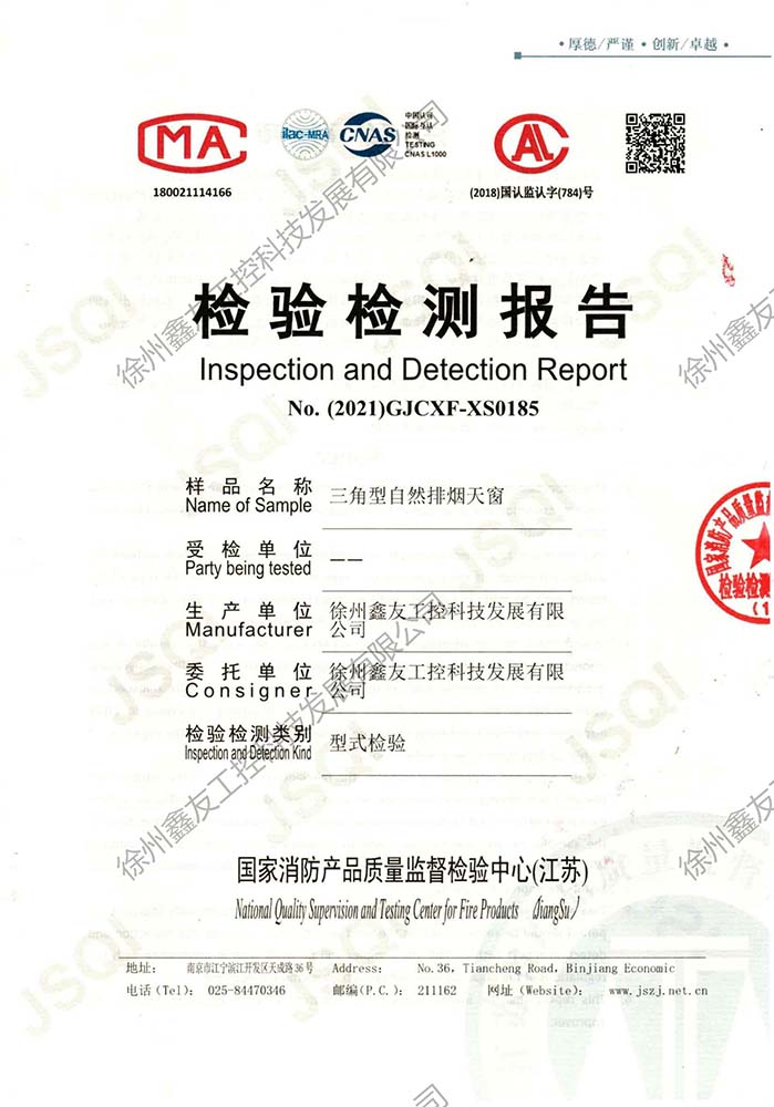 三角型電動排煙天窗檢測報告185