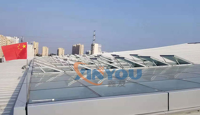 □天窗啟閉易群組控制,每組天窗數(shù)根據(jù)天窗數(shù)量及控制距離決定。其***開啟角度為70°。